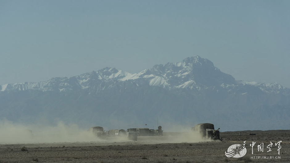 陣地を占領したばかりの北京軍区空軍防空団の兵士は5月上旬、敵情の報告を受け、迅速に兵器を撤収し、ミサイルを積み、行軍を開始した。中国北西部の大砂漠で、24時間態勢のフル武装実戦化機動訓練が実施された。