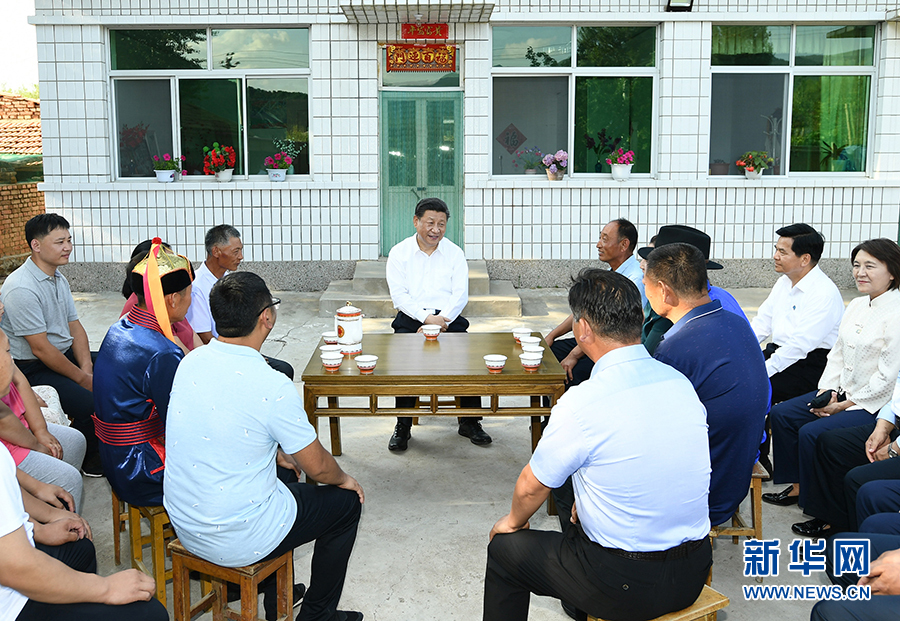 시 주석이 츠펑시 카라친치 허난가도 마안산촌에서 기층 간부·군중 대표와 좌담을 하고 있다.