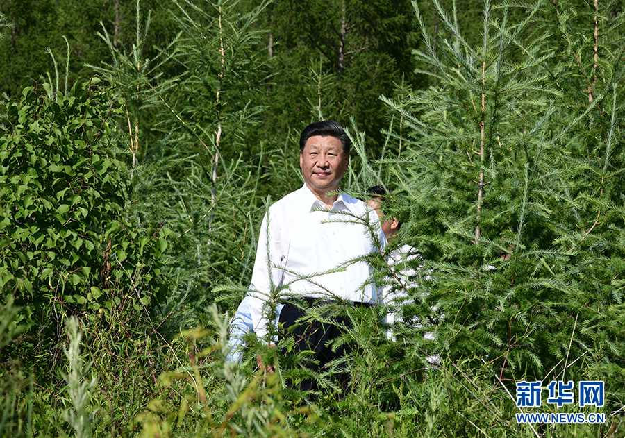 시 주석이 츠펑시 카라친치 마안산 벌목장에서 생태문명건설 현황을 시찰하고 있다.