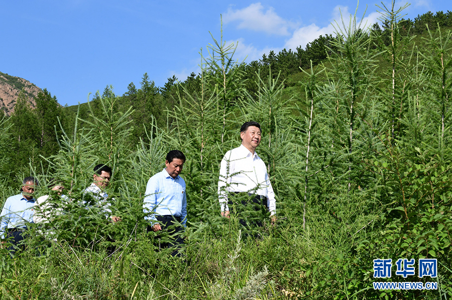 시 주석이 츠펑시 카라친치 마안산 벌목장에서 생태문명건설 현황을 시찰하고 있다.