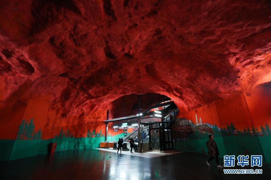 10월 8일, 스웨덴 스톡홀름에서 승객이 지하철 안을 걷고 있다. 스웨덴 수도 스톡홀름의 모든 지하철역 플랫폼과 내벽, 홀의 디자인은 각자의 특색을 자랑한다. 아티스트들은 각 예술장르의 특징을 활용해 지하철을 꾸몄고 오책찬란한 시각효과로 모든 승강장은 개성의 옷을 걸치게 되었으며 승객은 즐거운 여행을 체험하게 된다. 스톡홀름 지하철에 들어가 보면 마치 지하 예술 갤러리에 와 있는 듯한 착각을 불러 일으킨다.
