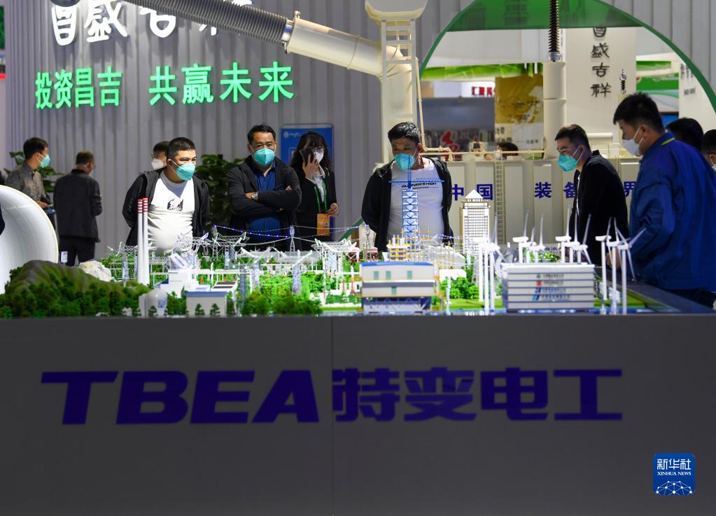 20일, 제7회 중국-유라시아 엑스포에서 방문객들이 송변전 설비를 살펴보고 있다.