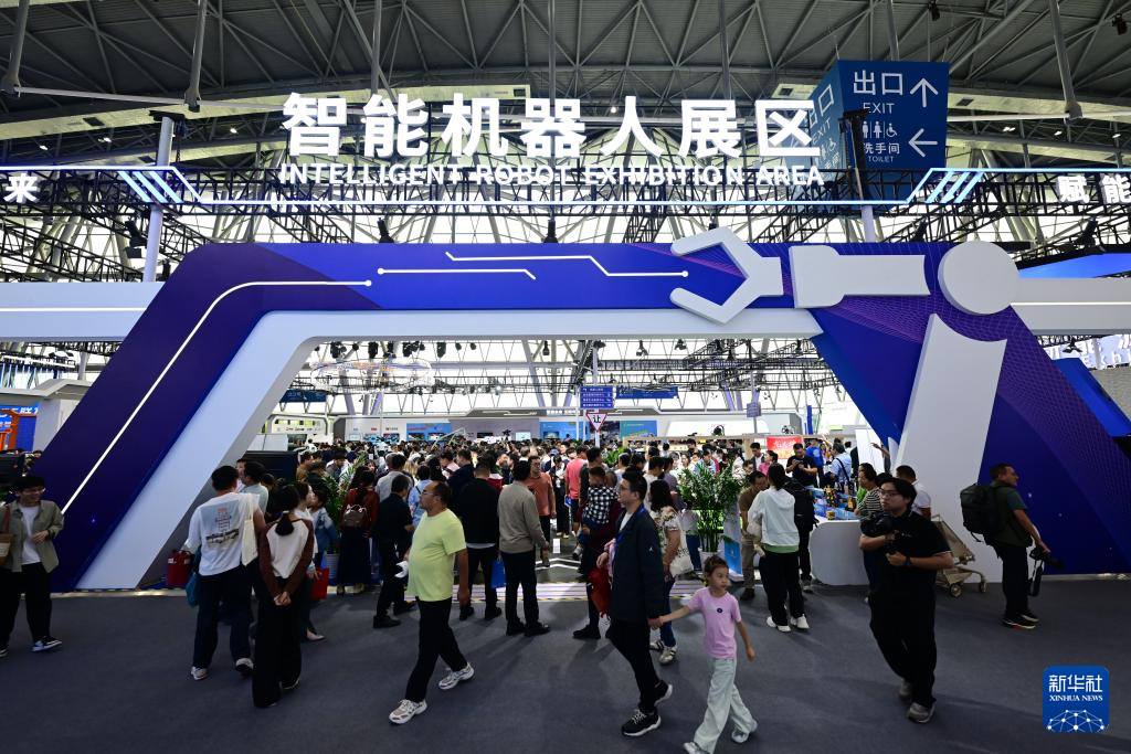 9월 20일, 방문객들이 2025 세계제조업대회의 스마트형 로봇 전시구역을 관람하고 있다. [신화사 저우무 기자 촬영]