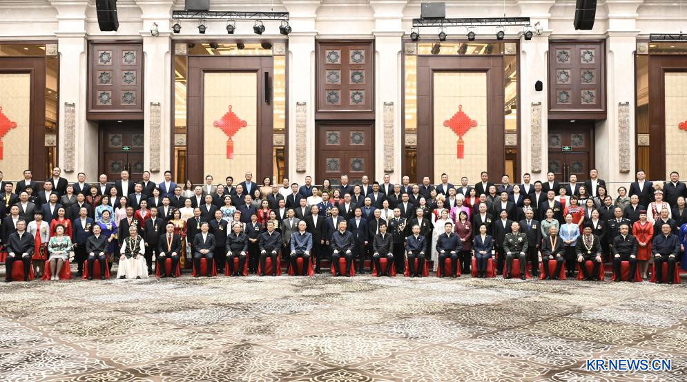시진핑(習近平) 중국 공산당 중앙위원회 총서기, 국가주석, 중앙군사위원회 주석이 23일 오후 우루무치(烏魯木齊)에서 신장위구르자치구 각 민족 각계 대표들을 접견하고 함께 기념사진을 찍었다.