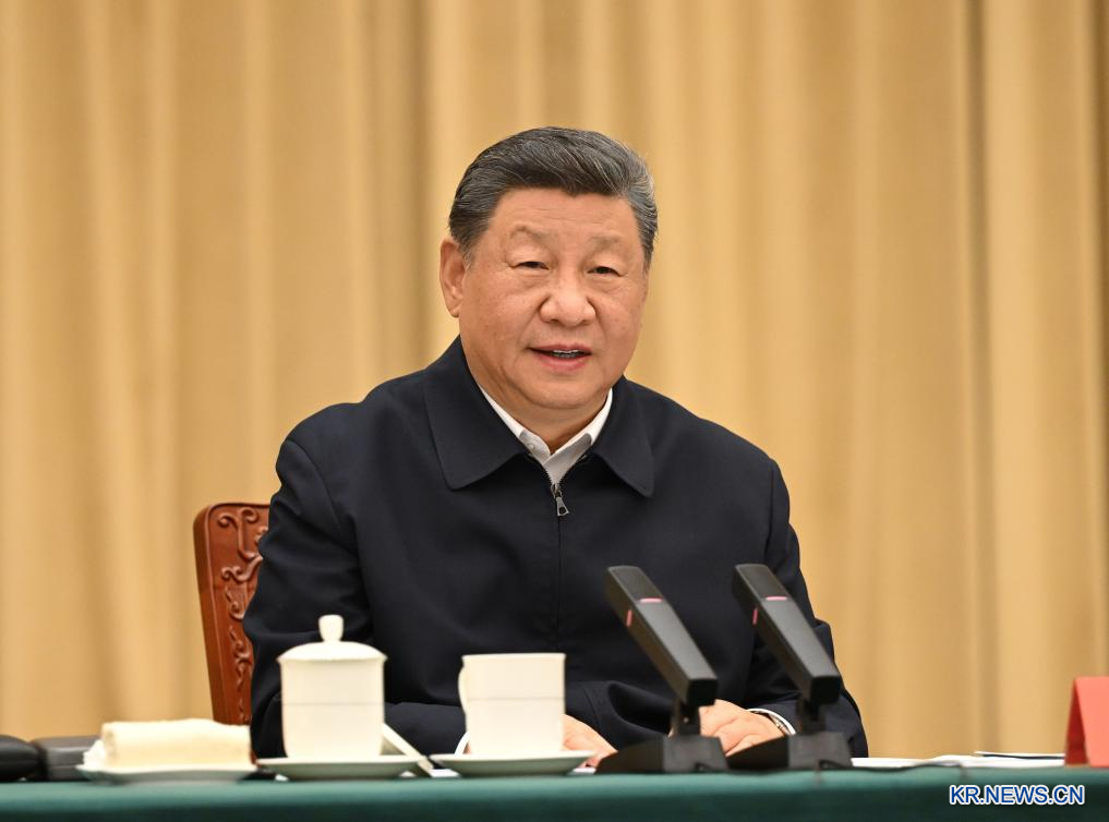 중앙대표단을 이끌고 신장위구르자치구 설립 70주년 경축행사에 참석한 시진핑(習近平) 중국 공산당 중앙위원회 총서기, 국가주석, 중앙군사위원회 주석은 24일 오후 우루무치(烏魯木齊)에서 신장위구르자치구 당위원회와 정부의 업무 보고를 청취하고 중요 연설을 했다.[촬영/신화사 기자 셰환츠(謝環馳)]
