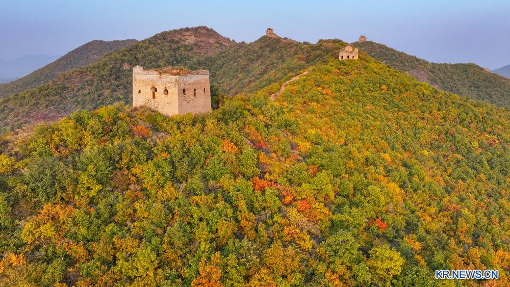 가을이 깊어지자, 허베이(河北)성 친황다오(秦皇島)시에 위치한 둥자커우 만리장성 일대가 울긋불긋 가을빛으로 물들었다.