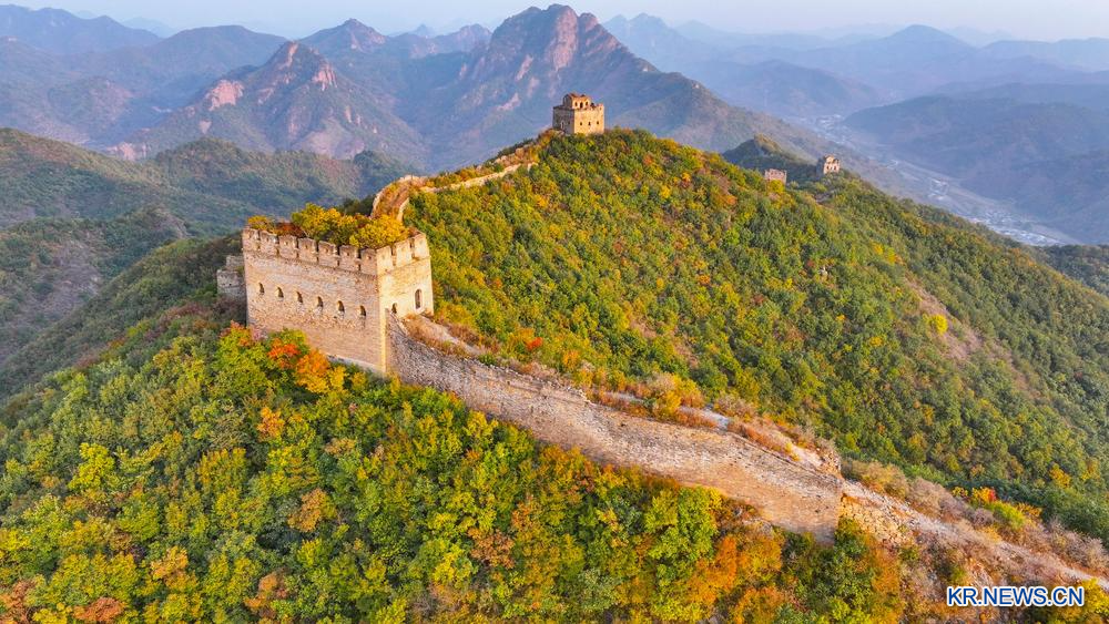 가을이 깊어지자, 허베이(河北)성 친황다오(秦皇島)시에 위치한 둥자커우 만리장성 일대가 울긋불긋 가을빛으로 물들었다.