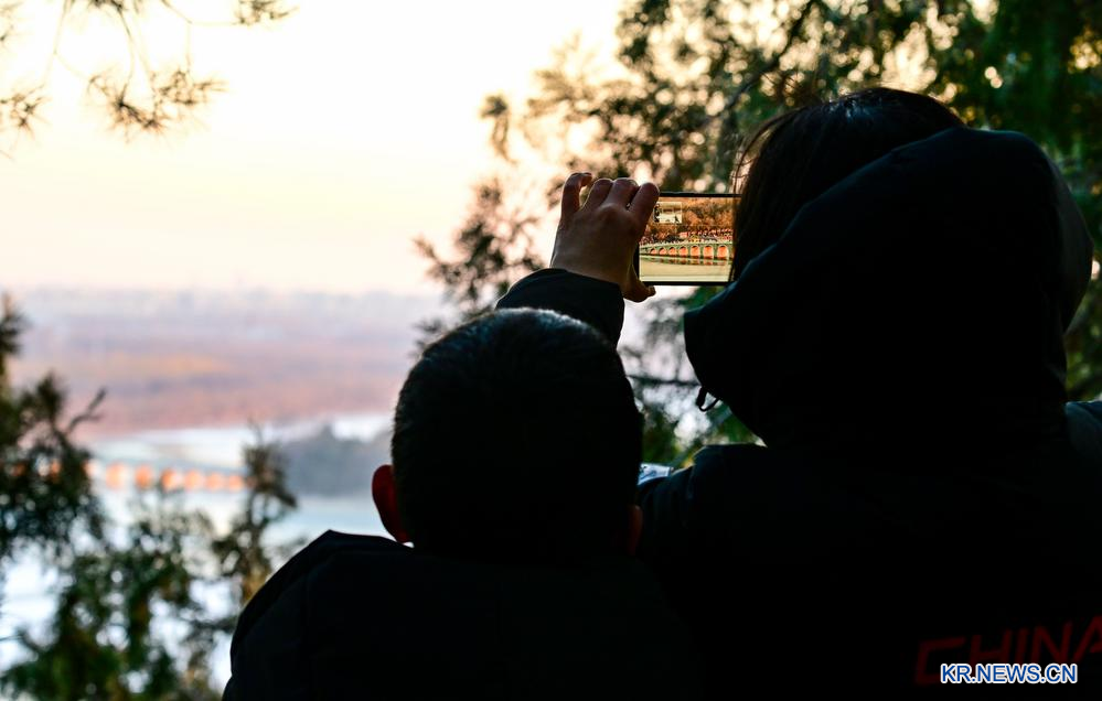 절기상 동지(冬至)인 이날, 석양이 이화원 십칠공교(十七孔橋)를 비춰 뿜어져 나온 '금광천동'의 경관이 관광객과 사진 애호가의 발길을 이끌었다.