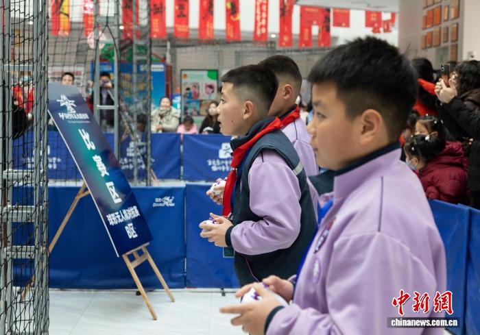 청소년 선수들이 구형 드론 시합을 벌이고 있다. [중신사 양디 기자 촬영]