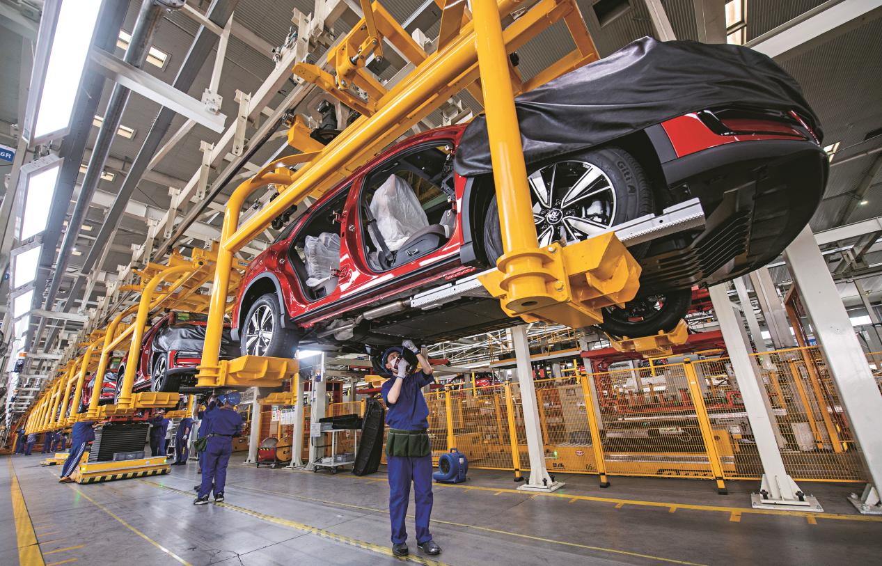 산시(陝西)성 시안(西安)시에 위치한 비야디 완성차 조립공장에서 노동자가 작업을 하고있다. 사진/VCG