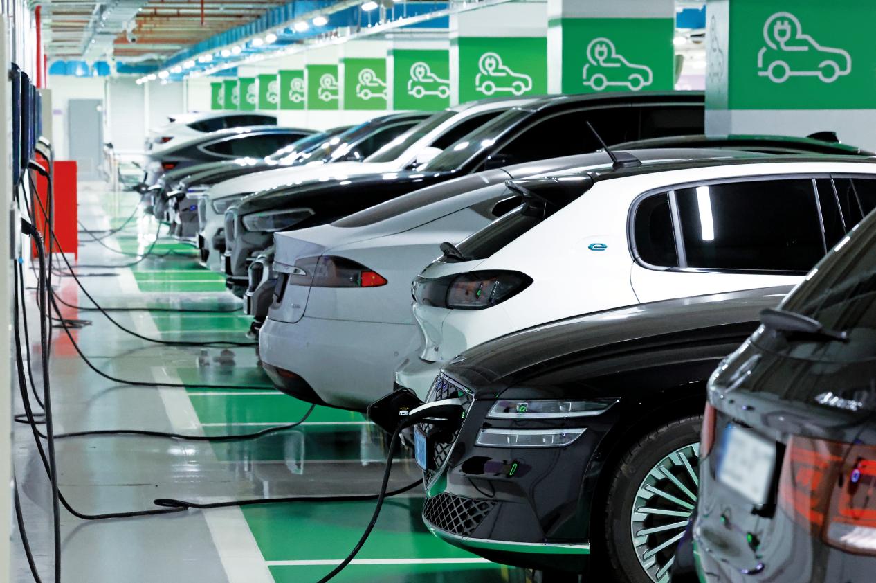 한국 서울의 한 주차장에 전기차들이 충전을 하고 있다. 사진/VCG