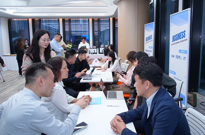 2025년 11월 13일, 광둥(廣東)성 선전(深圳)시 무역촉진위원회, 글로벌서비스센터, 한국 중소벤처기업부, 한국 이노비즈(INNOBIZ)협회가 공동 주최한 중한 과학기술기업 협력교류행사가 선전에서 개최됐다. 행사 기간 양국 기업들이 일대일 상담을 진행하고 있다. 사진/광둥성 선전시 무역촉진회 공식 웹사이트