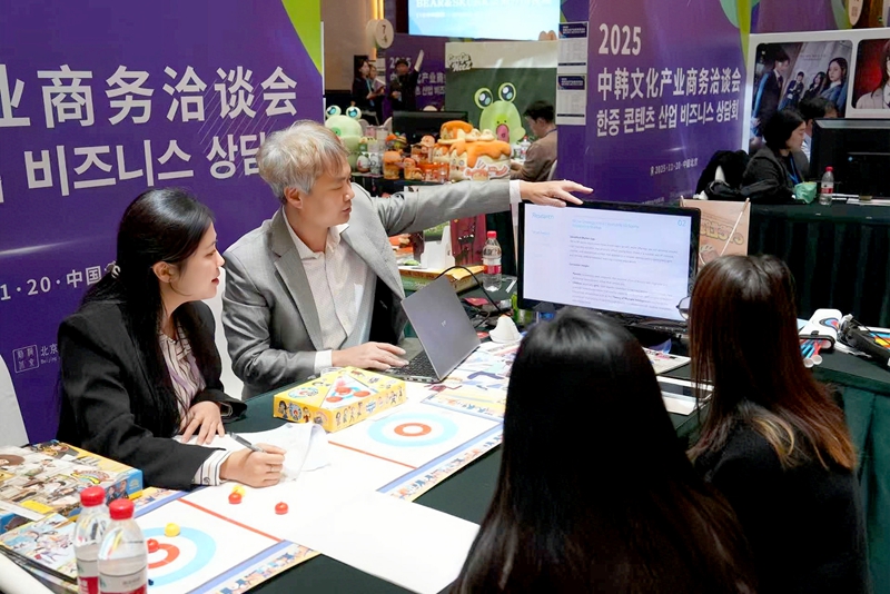 대한무역투자진흥공사(KOTRA) 베이징(北京) 대표처와 한국콘텐츠진흥원 베이징 대표처가 공동 주최한 2025 중한 콘텐츠 산업 비즈니스 상담회가 2025년 11월 20일 베이징(北京)에서 개최됐다. 행사에서 중한 양측 업체가 상담을 진행하고 있다. 사진/KOTRA 베이징 대표처 제공