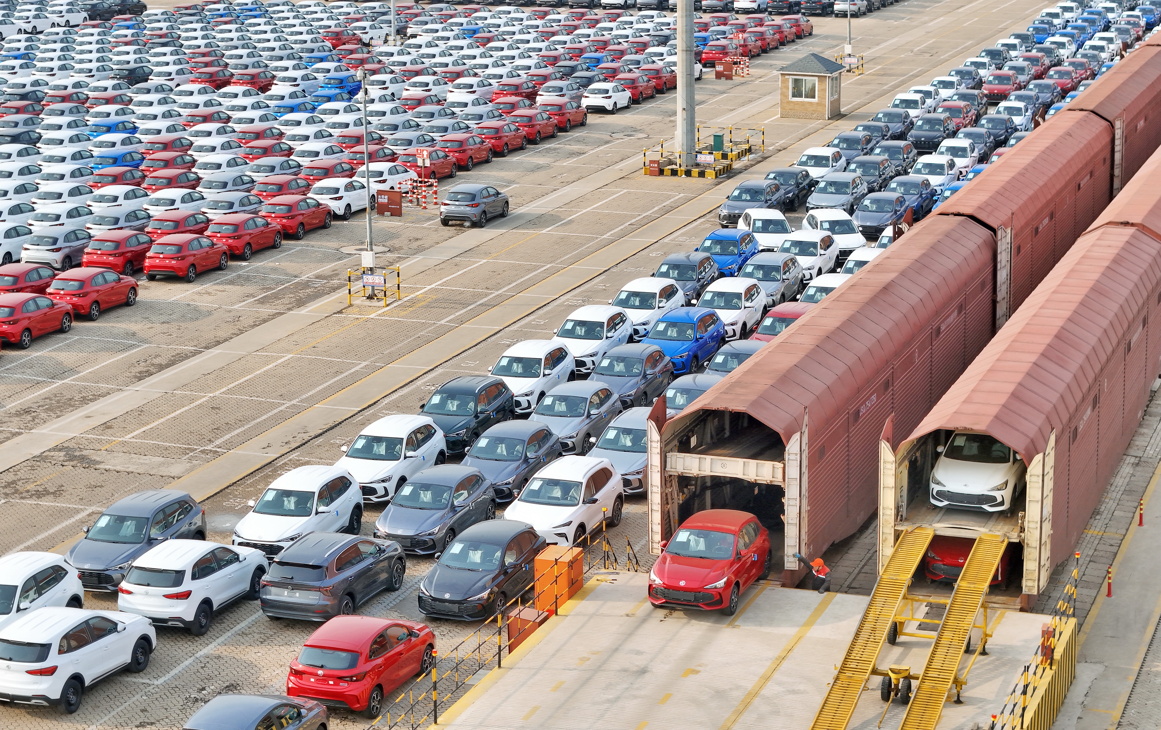 1월 14일, 국산 자동차들이 산둥 옌타이항에서수출을 기다리고 있다.