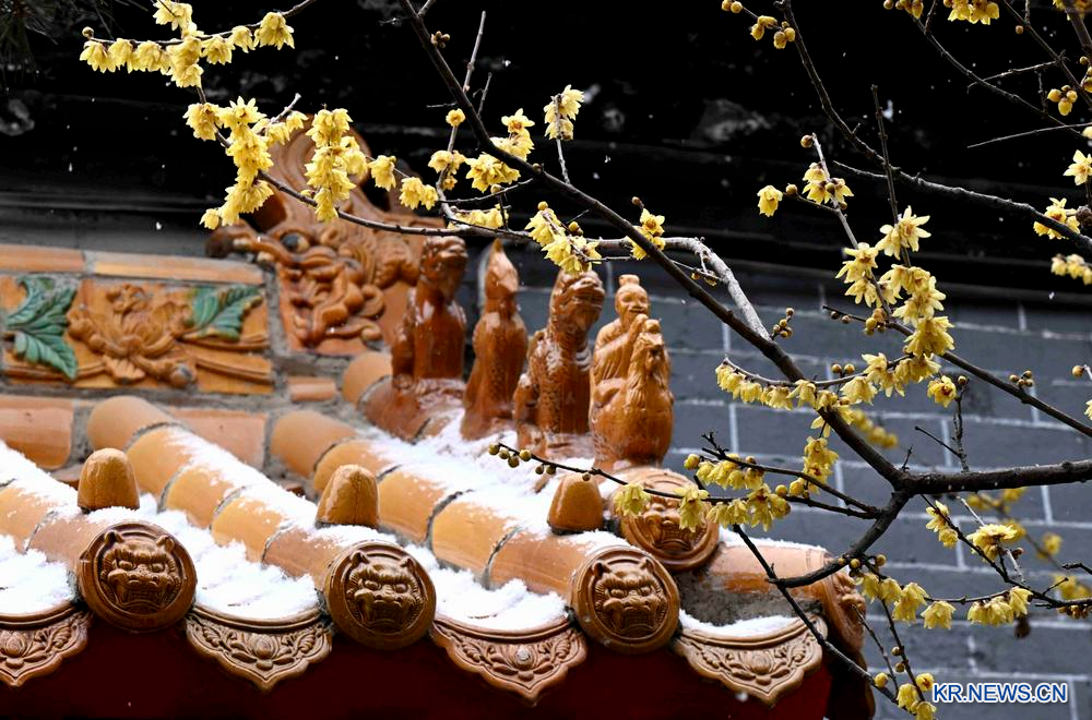 18일 허베이(河北)성 스자좡(石家莊)시 스팡위안(十方院)에서 촬영한 매화.