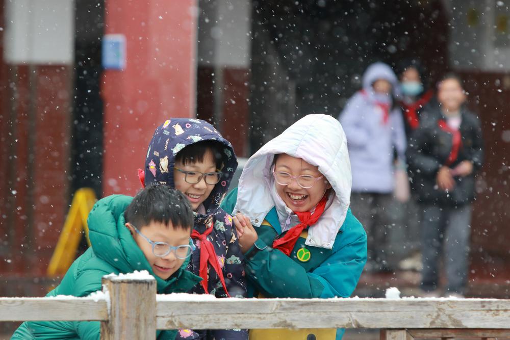 장쑤(江蘇)성 우시(無錫)시 초등학생들이 20일 눈장난을 치고 있다.