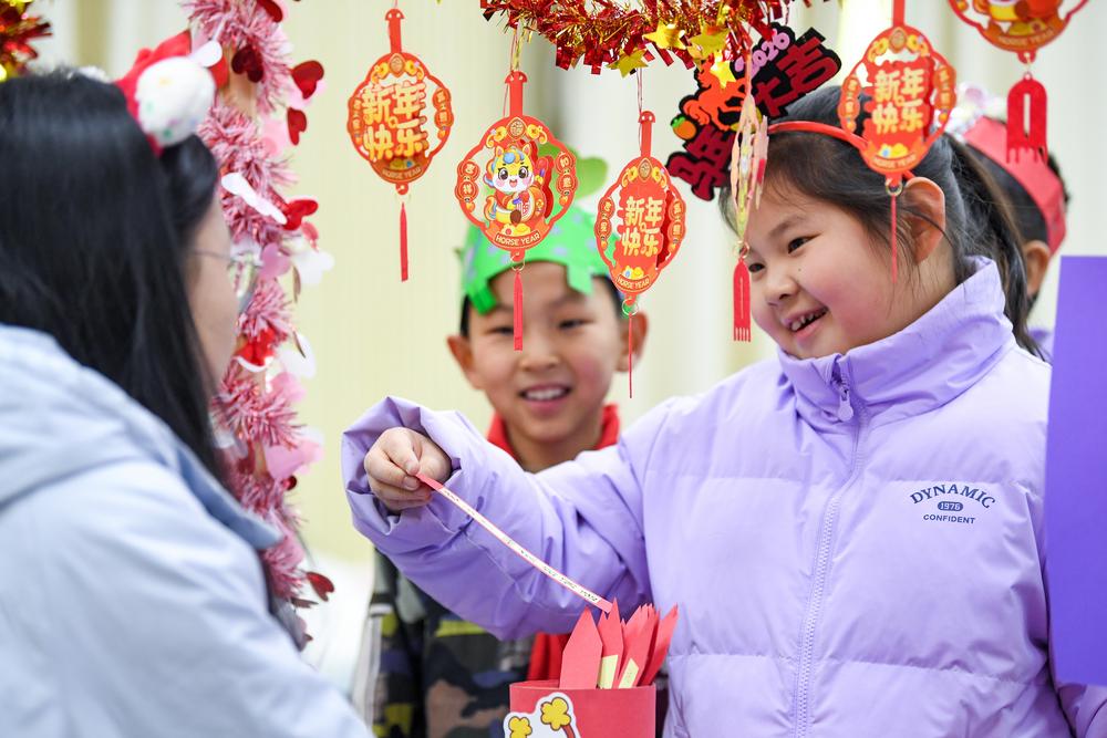 22일 허베이(河北)성 스자좡(石家莊)시의 초등학교 2학년 학생이 '러카오(樂考·지필고사 없는 놀이형 평가)' 활동에 참여하고 있다.