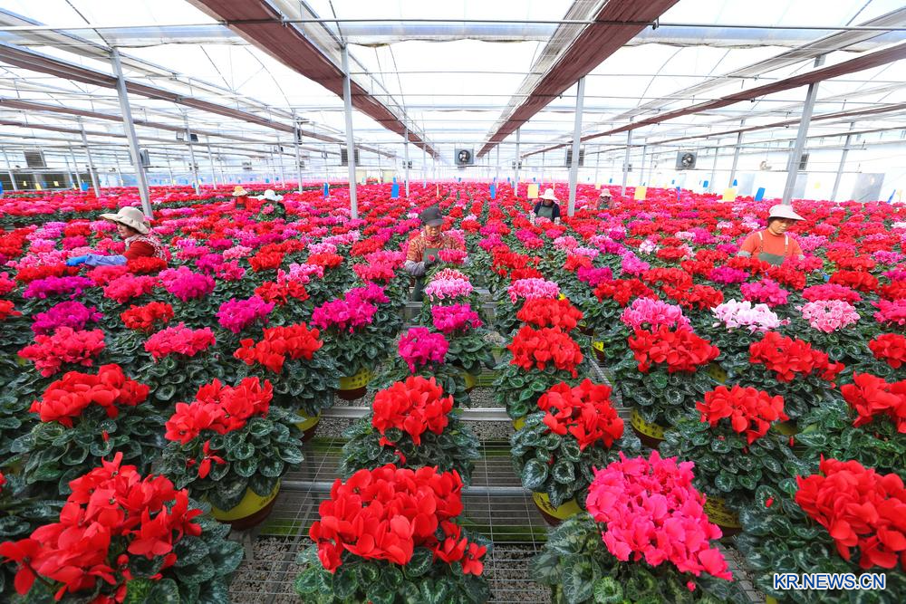 춘절(春節·음력설)이 다가오면서 산동(山東)성 칭다오(青島)시 지모(即墨)구 링산(靈山) 화훼∙문화 산업단지가 춘절맞이 꽃(年宵花)의 생산∙판매 성수기에 접어들었다.