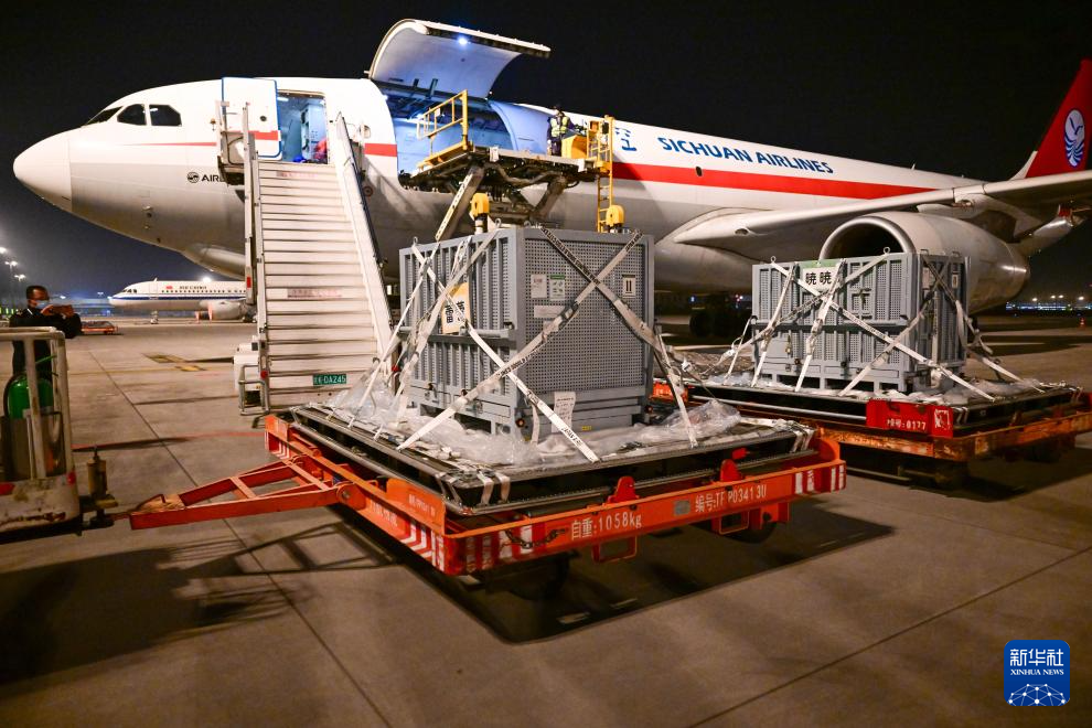 1월 28일 새벽, 자이언트판다 '샤오샤오'와 '레이레이'가 청두 톈푸 국제공항에 도착했다.