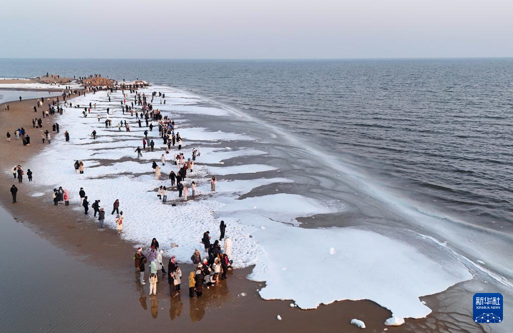 친황다오시의 해안선을 따라 결빙이 진행되자 이를 감상하려는 여행객의 발길이 이어졌다.