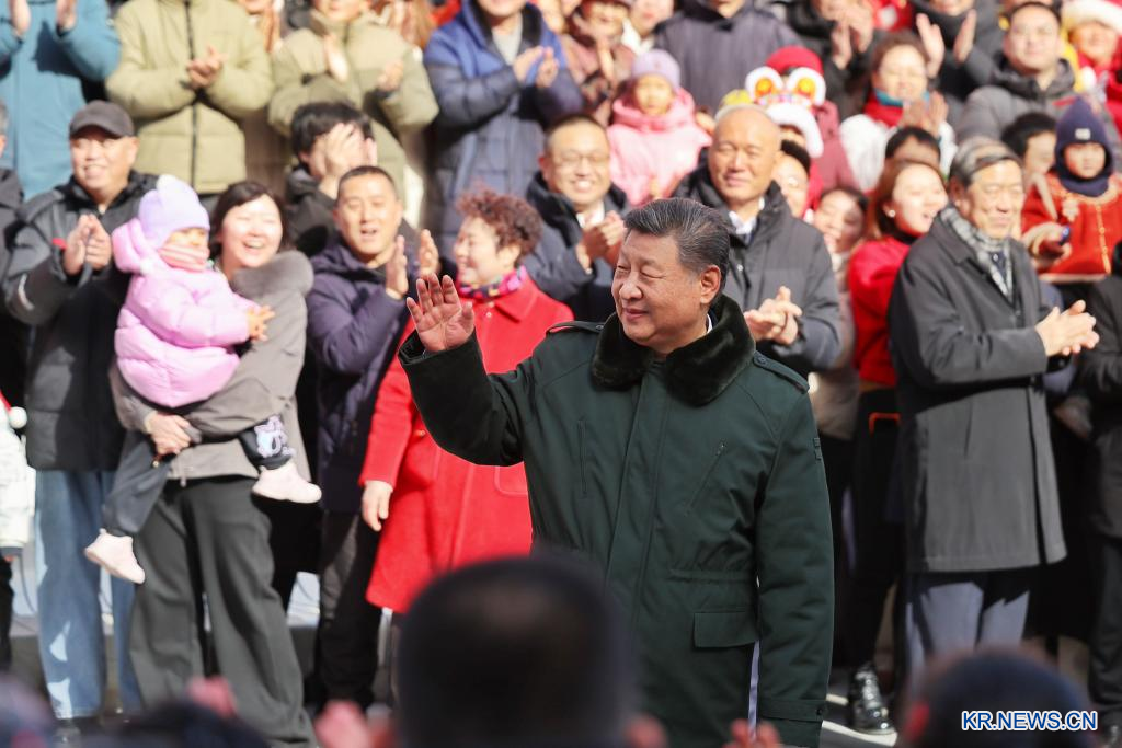시진핑 주석이 10일 오전 둥청(東城)구 룽푸쓰(隆福寺) 거리를 방문해 현장 시민들에게 손을 흔들어 인사하고 있다.