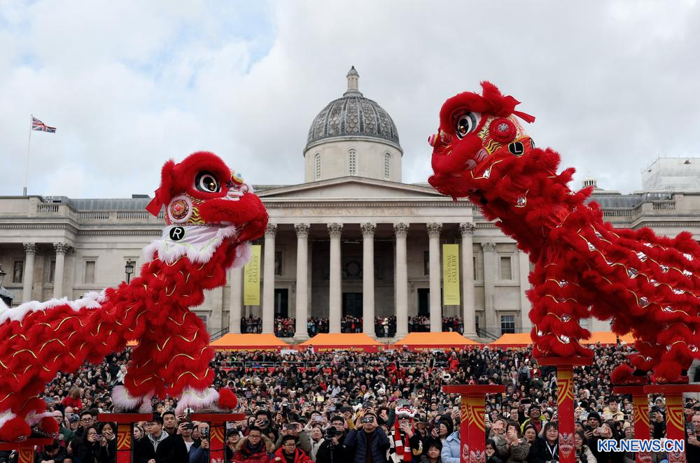 중국 춘절(春節·음력설) 전통 축제가 22일 영국 런던 트라팔가 광장에서 열렸다.