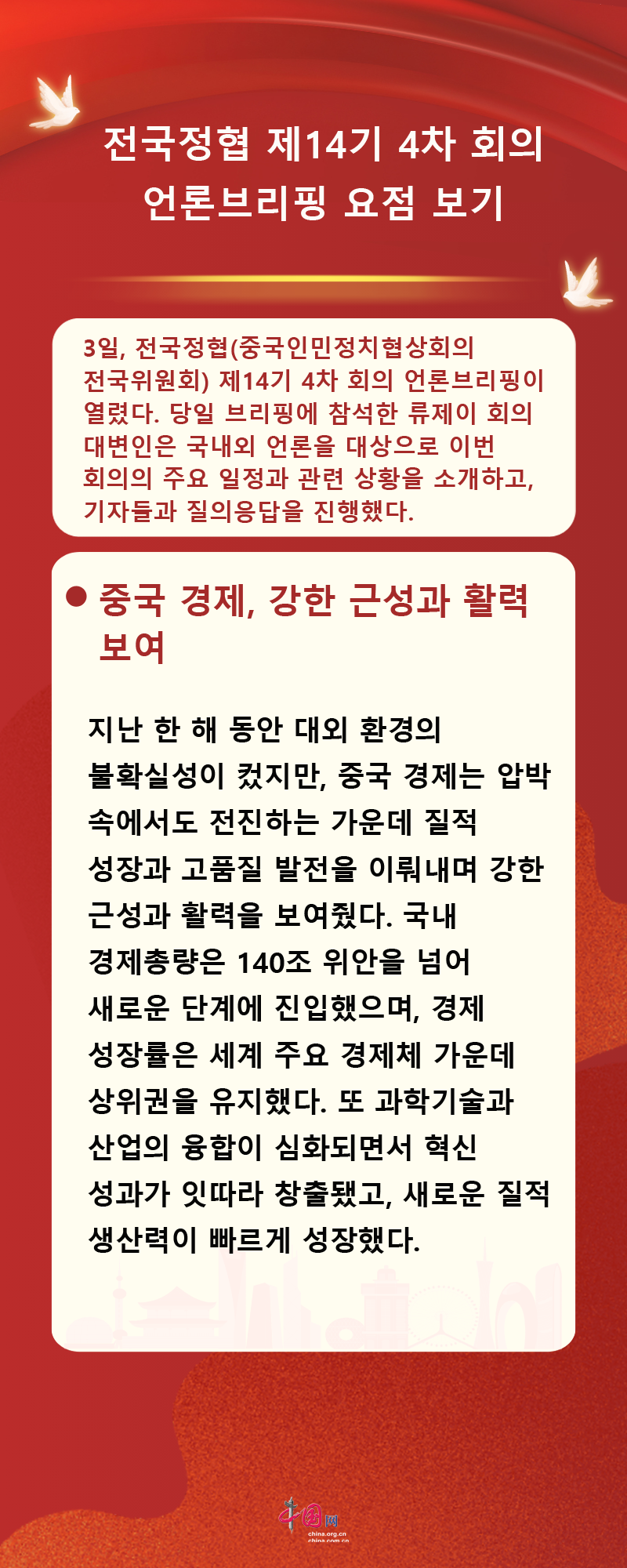 [인포그래픽] 전국정협 제14기 4차 회의 언론브리핑 요점 보기