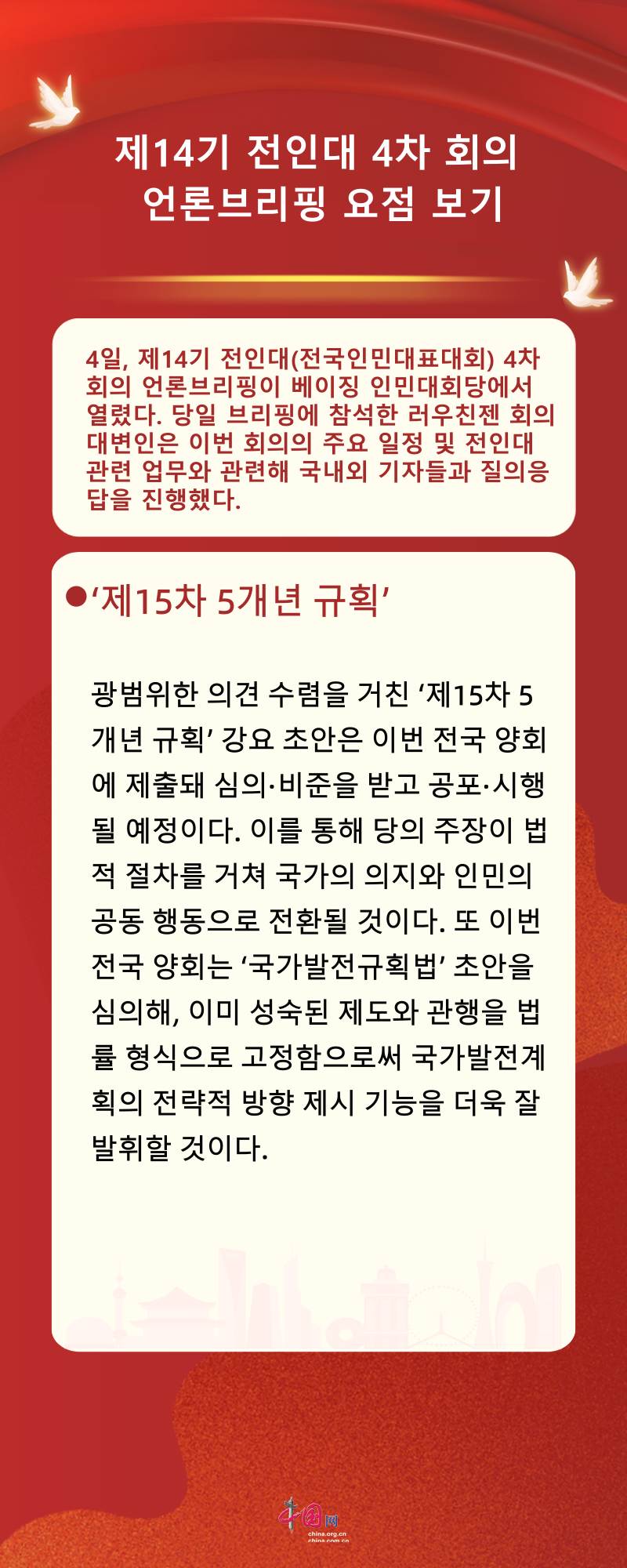 [인포그래픽] 제14기 전인대 4차 회의 언론브리핑 요점 보기