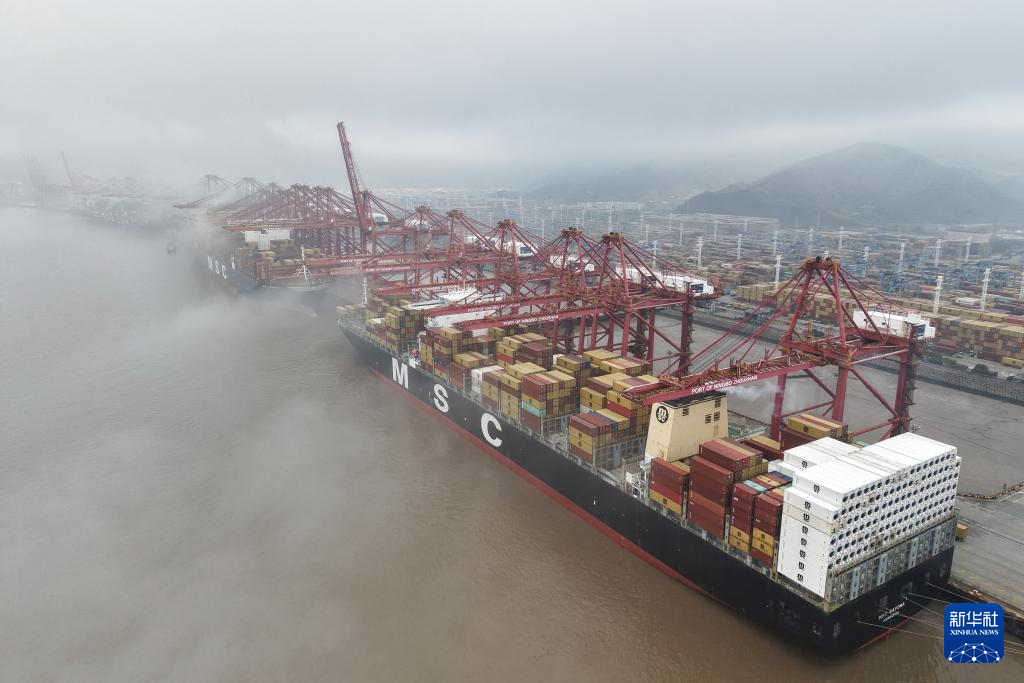 3월 29일, 화물선들이 닝보 저우산항 촨산항 구역 컨테이너 부두에 정박해 있다. [신화사 황쭝즈 기자 촬영]