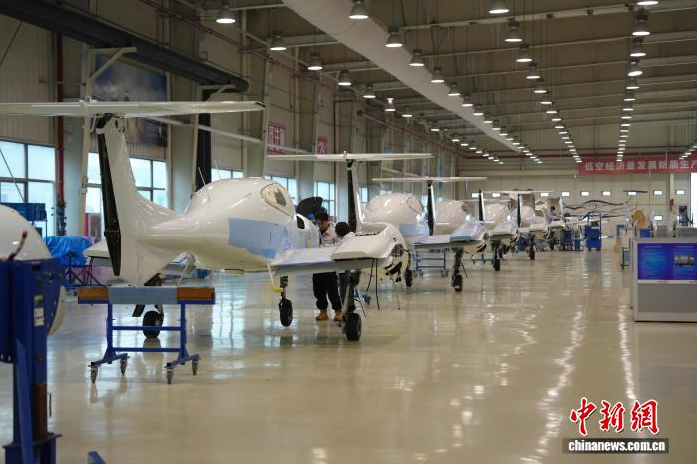 중뎬커우후다이아몬드항공기제조유한회사의 항공기 조립 생산 라인 [중신사 장쥔 기자 촬영]