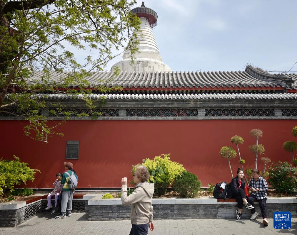 12일 베이징 백탑사 주변을 둘러보는 사람들