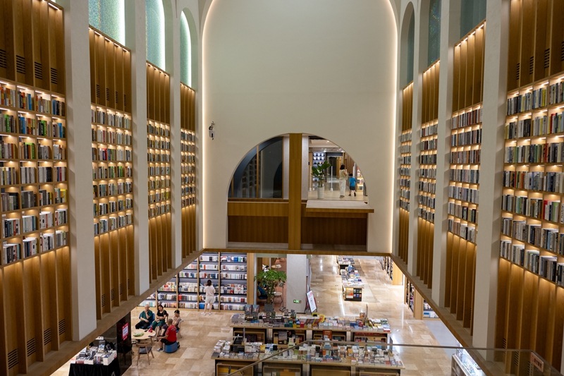 높이 솟은 책장으로 벽면을 장식한 진촹수청 차오톈궁 지점은 시민과 관광객들이 앞다퉈 발 도장을 찍는 새로운 문화 랜드마크가 됐다.