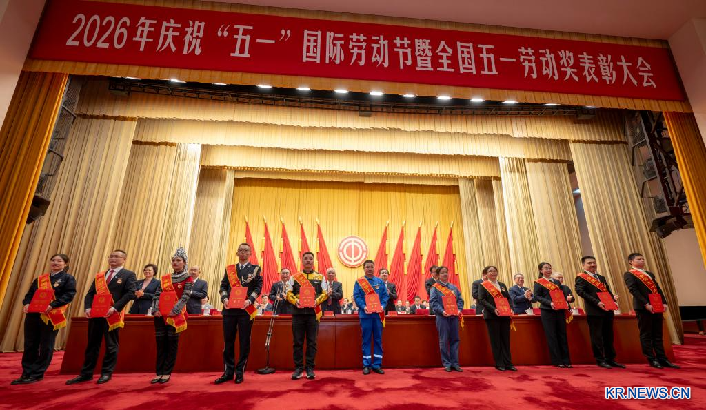 2026년 '5·1' 국제노동절 경축 및 전국 노동자 표창대회가 28일 베이징 인민대회당에서 열렸다. 이번 대회에서는 총 3천24건의 전국 노동상이 수여됐다. 그중 379개 단체와 1천462명이 각각 전국 노동상을 받았고 1천183개 단체가 전국 노동자 선봉호로 선정됐다.