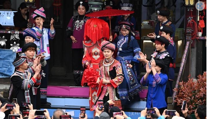 최근 충칭시 슈산투자족먀오족자치현 훙안 고진에서 투자족 결혼 풍습을 주제로 한 몰입형 공연이 성황리에 펼쳐졌다...