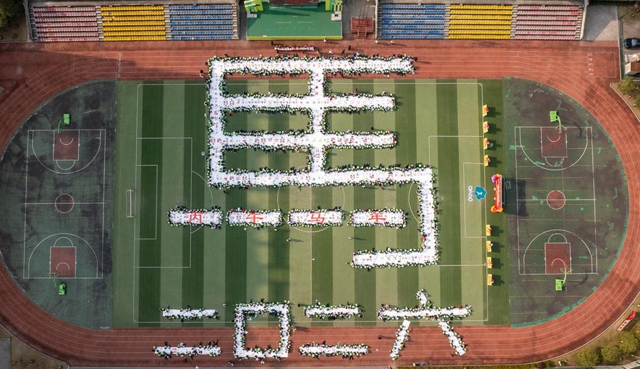 中 쓰촨, 초등학교 운동장에 등장한 거대한 '마(馬)'자 캔버스