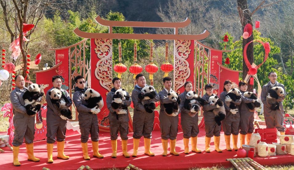 2025년생 새끼 자이언트 판다들 춘제 행사서 등장